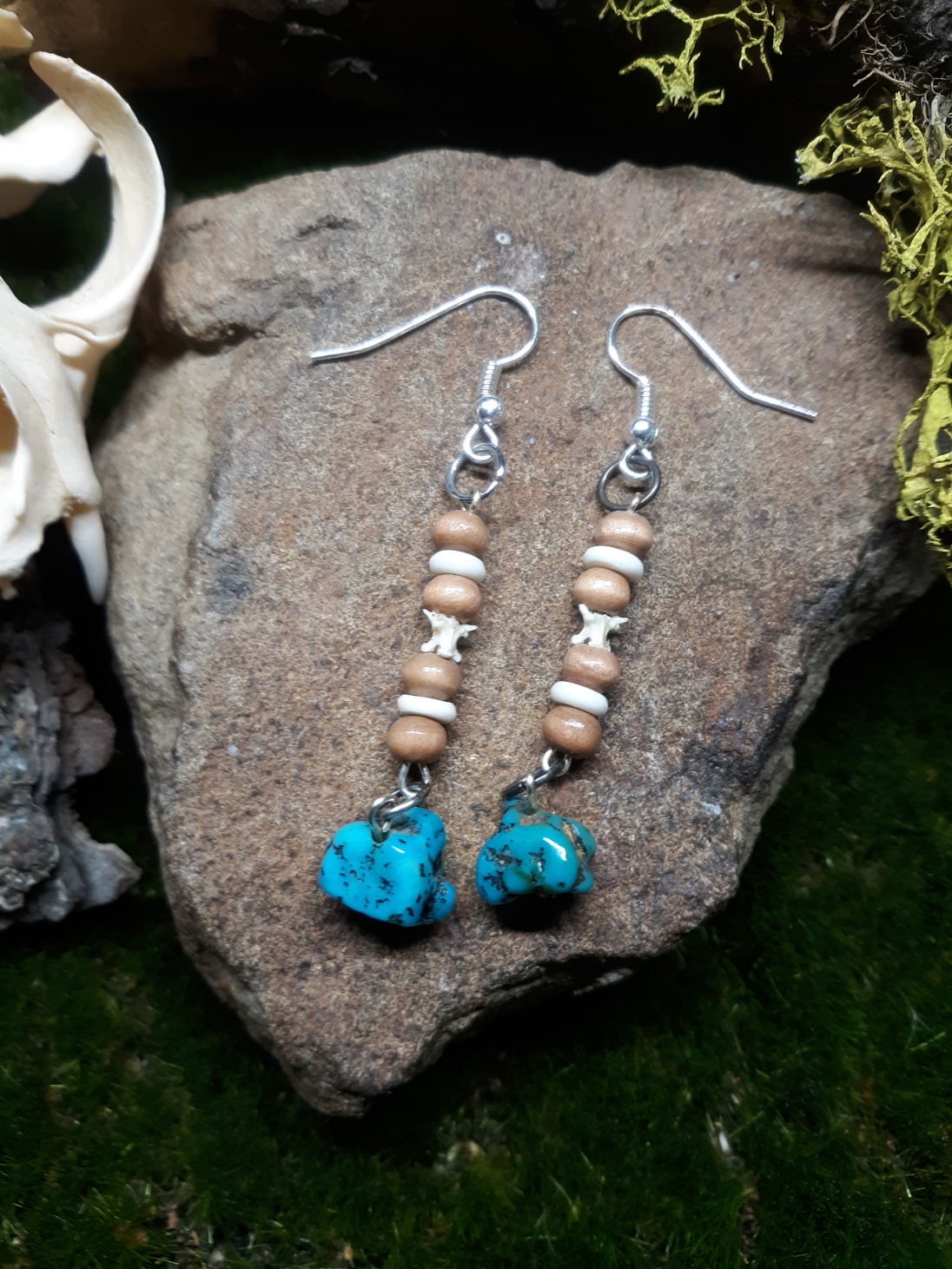 Turquoise Earrings with Small Serpent Vertebrae and Acacia Bead Earrings