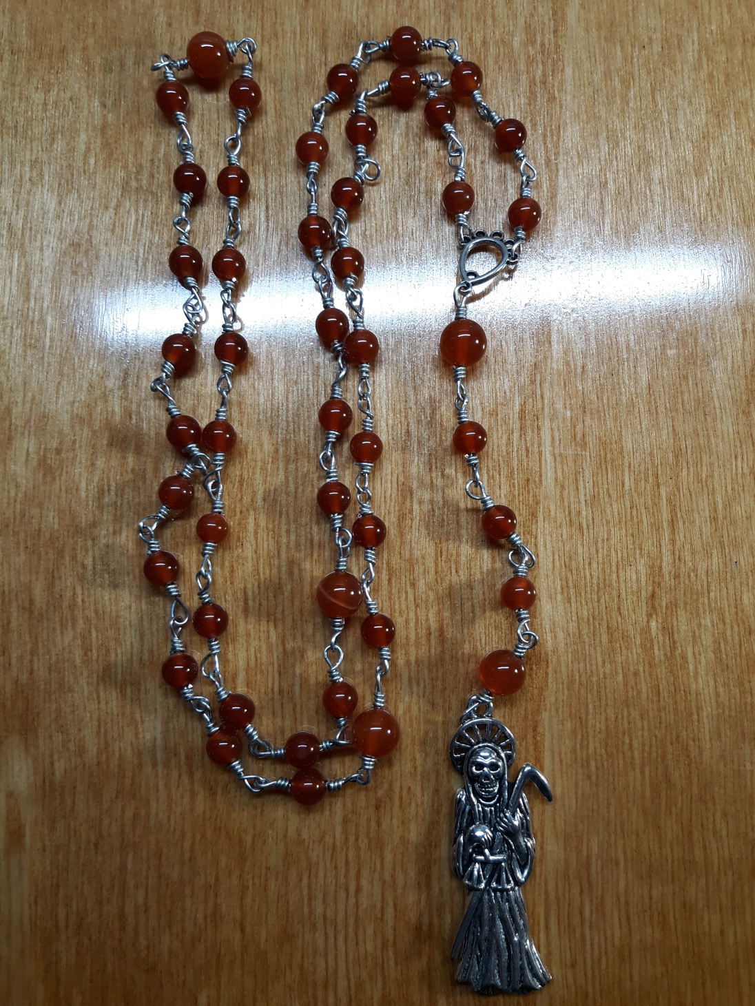 Santa Muerte Rosary Red Carnelian Stone (Chaplet for the Dead)